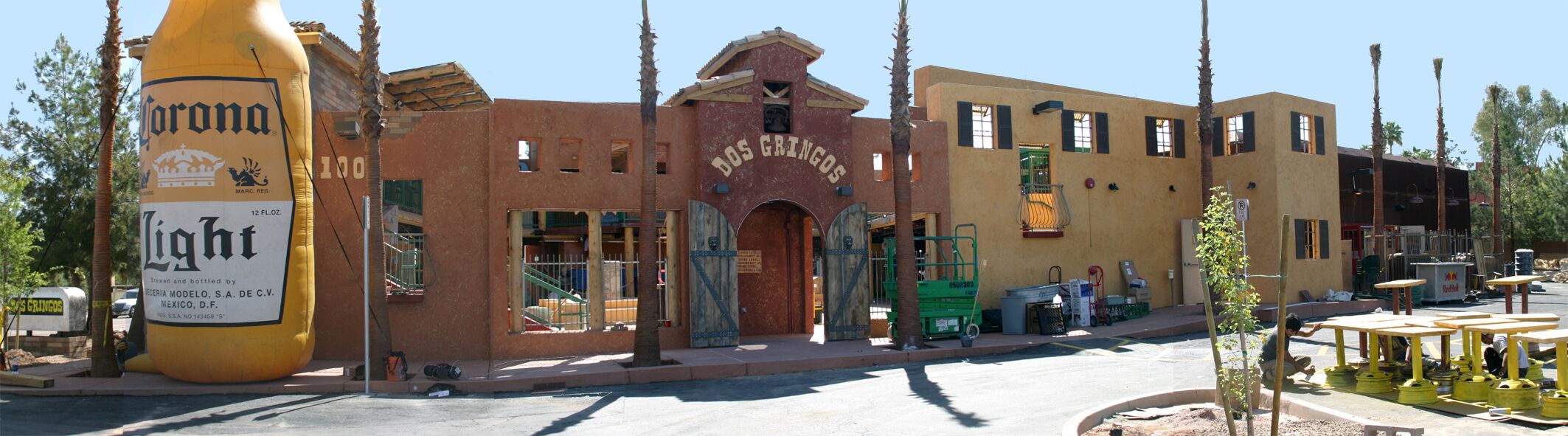 This project included both revisions to the existing building as well as the addition of a large partially covered second floor balcony. This area is surrounded by a combination of both wood and masonry walls. The balcony floor construction consists of concrete topping over steel deck supported by steel beams and columns. The roof construction consists of slop- ing pre-fabricated wood trusses, at stick framing, a sloping stick framed tension ring as well as a viga-log supported roof.